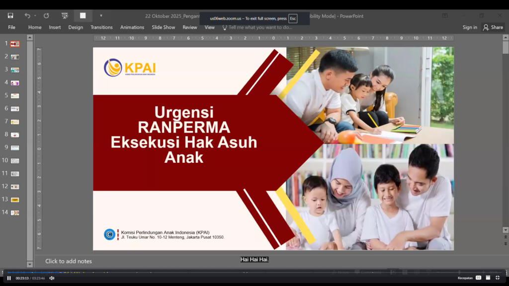 Dorongan ini mengemuka dalam kegiatan Focus Group Discussion (FGD) penyusunan Rancangan Peraturan Mahkamah Agung (RANPERMA) tentang Implementasi Eksekusi Hak Asuh Anak yang diselenggarakan KPAI secara daring pada, Rabu (22 Oktober).