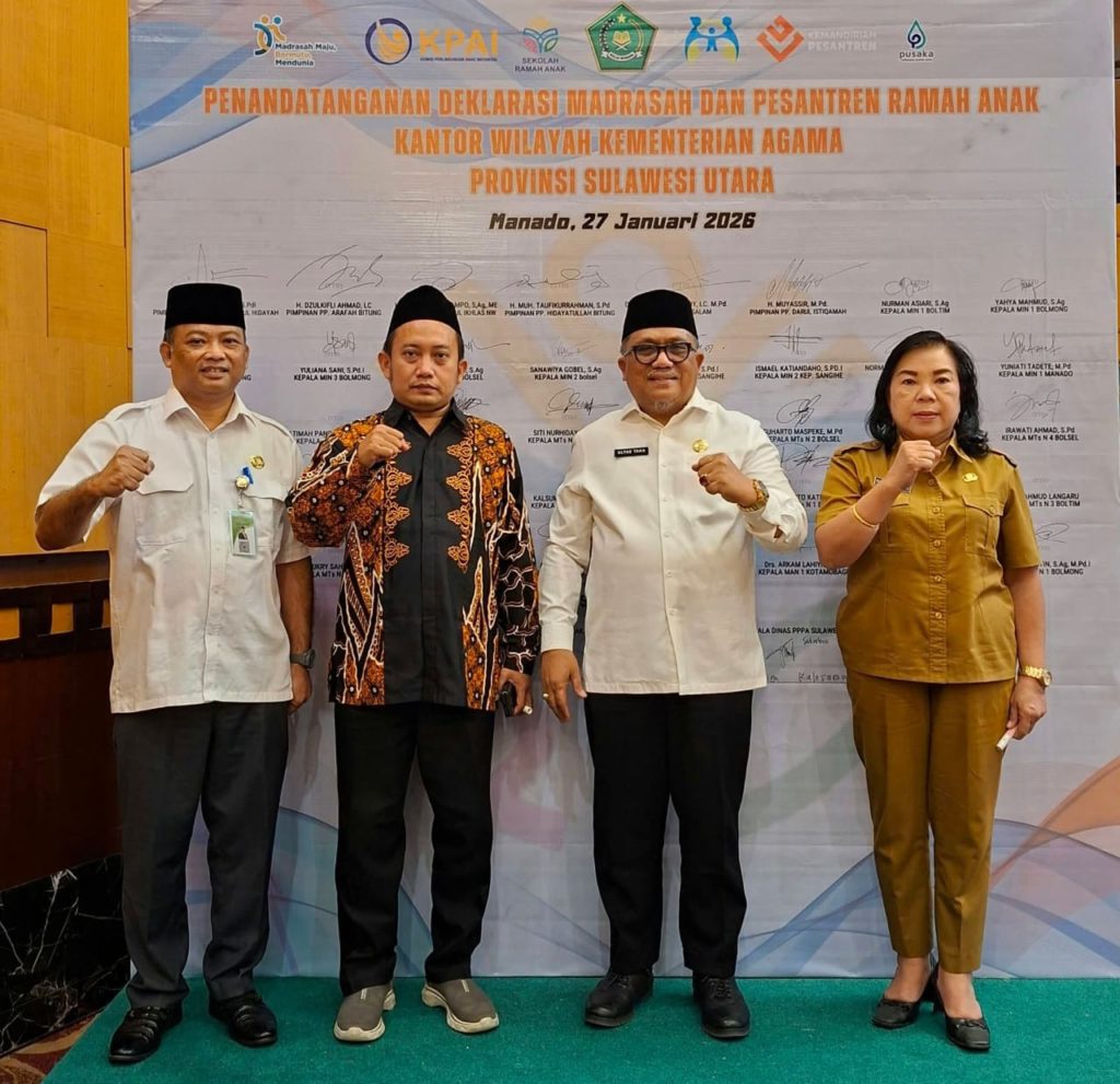 Manado, – Komisi Perlindungan Anak Indonesia (KPAI) menyambut positif deklarasi pencanangan Madrasah dan Pesantren Ramah Anak yang difasilitasi oleh Bidang Pendidikan Islam (Pendis) Kantor Wilayah Kementerian Agama Provinsi Sulawesi Utara dalam rangkaian Rapat Koordinasi Pendidikan Islam 2026 di Manado pada, 24 Februari 2026. Deklarasi ini dinilai sebagai langkah awal yang penting untuk mewujudkan lingkungan pendidikan keagamaan yang aman, nyaman, dan bebas dari segala bentuk kekerasan terhadap anak.