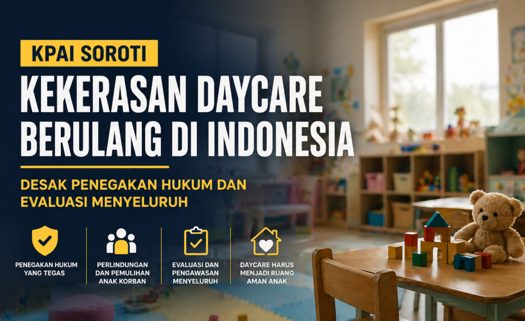 KPAI menegaskan bahwa daycare harus menjadi ruang aman yang mendukung tumbuh kembang anak, bukan tempat terjadinya kekerasan. Oleh karena itu, reformasi tata kelola pengasuhan anak harus menjadi agenda prioritas nasional demi menjamin perlindungan optimal bagi seluruh anak Indonesia. (Ed:Kn)
