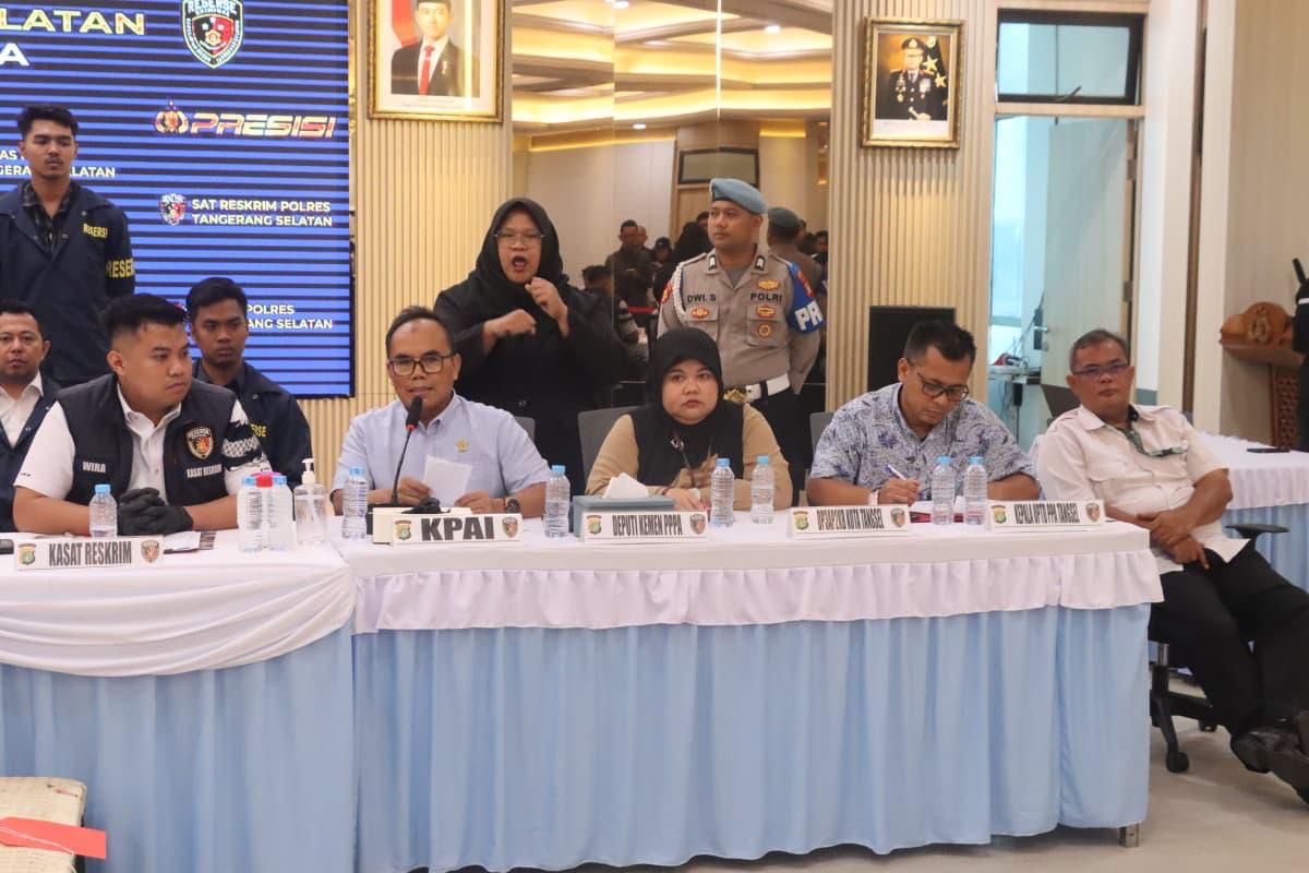 Kapolres Tangsel AKBP Victor DH Inkiriwang memaparkan kronologi penanganan kasus dugaan bullying yang menimpa anak korban yang terjadi pada 20 Oktober 2025 dan melibatkan anak terduga pelaku yang merupakan teman sekelas. korban. Dalam proses penyelidikan, korban meninggal dunia saat menjalani perawatan di ICU RS Fatmawati, Jakarta Selatan.